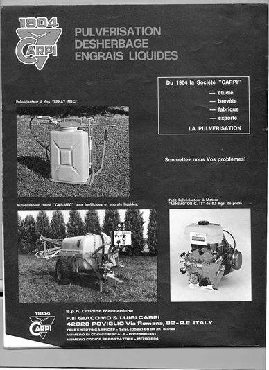 L'azienda Fratelli Giacomo & Luigi Carpi è stata fondata nel 1904 a Poviglio (Reggio Emilia), Italia, dai fratelli Giacomo e Luigi Carpi, che si sono avventurati nel design, nella produzione e nella distribuzione di attrezzature per la spruzzatura agricola. Per quarantiquattro anni, erano conosciuti come F.lli Giacomo & Luigi Carpi.